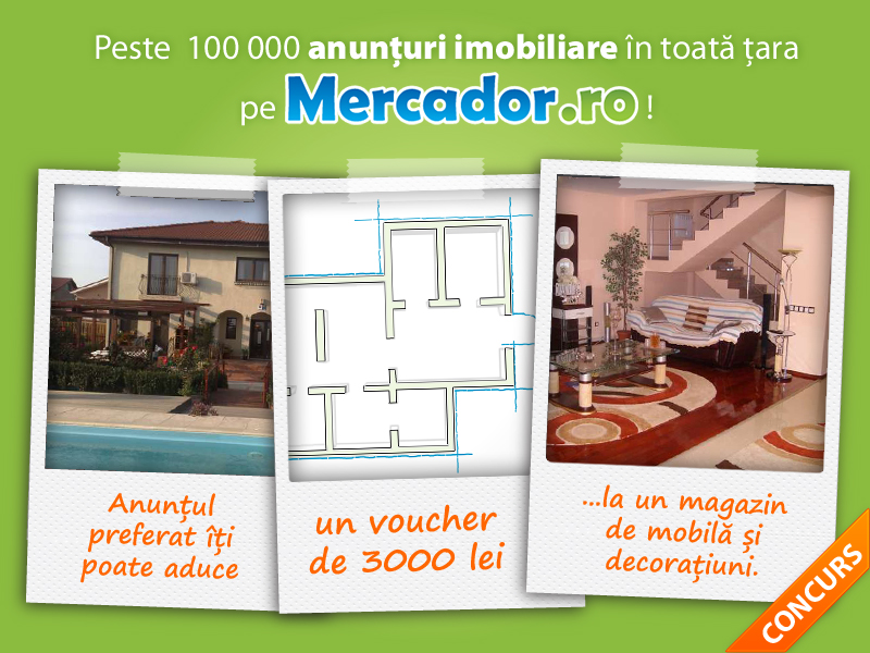 Alege anuntul cu apartamentul sau casa ta preferata pe Mercador.ro/Imobiliare si poti castiga un cadou pentru acasa: un voucher la un magazin de mobila si decoratiuni in valoare de 3000 RON.